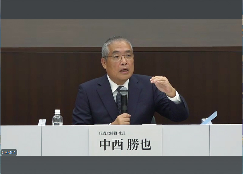 記者会見する三菱商事 中西勝也社長(出典 三菱商事)