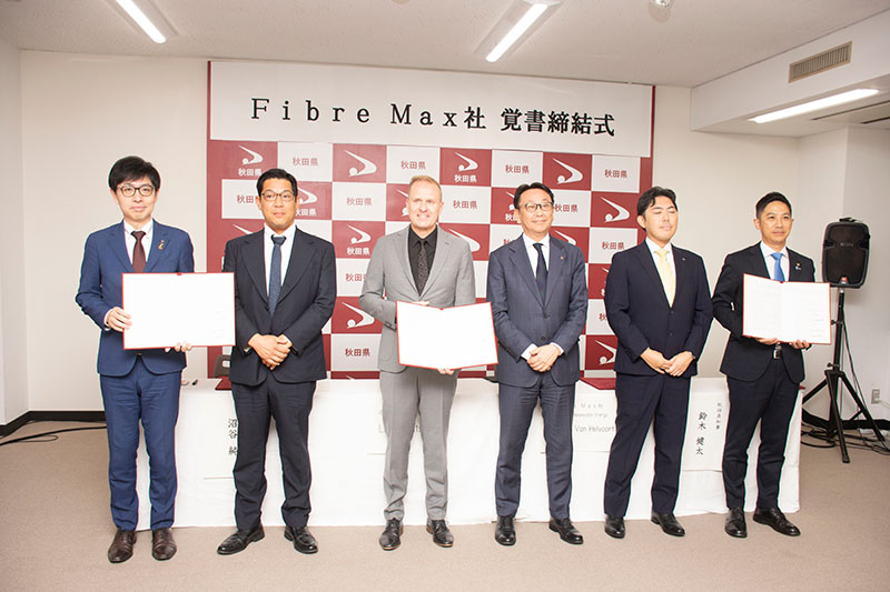 締結式は秋田県庁で行われ、秋田県の鈴木健太知事と秋田市の沼谷純市長、ファイバーマックスのDirector Renewable Energy サンダー・V・ファン・ヘルヴォルト氏、同社の日本におけるパートナーであるアイルエンジニアリング(本社:岡山県倉敷市)の玄馬淳社長、マツモト綱販(本社:大阪市)の松本健吾取締役、地元での調整役を担うウェンティ・ジャパン(本社:秋田市)の佐藤裕之社長が出席した。