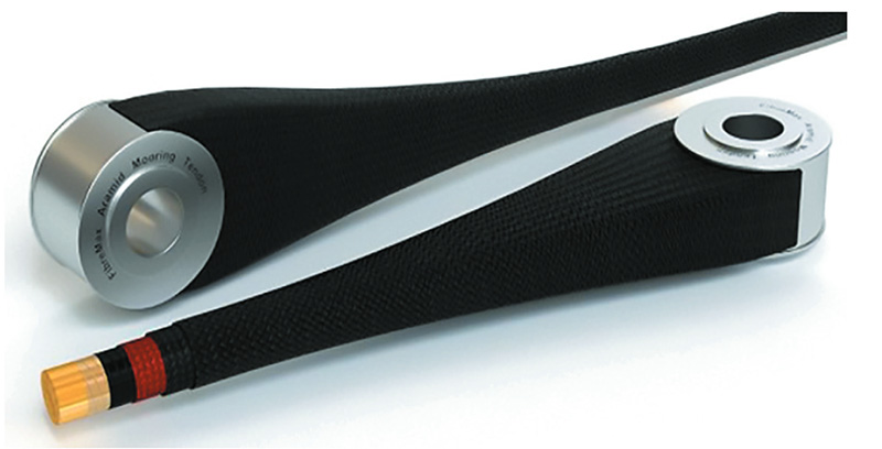 同社の「エンドレスワインディング」という製法は撚りや編みにより強度を保つのではなく、素材の強度がそのまま製品の強度となることが大きな特徴だ。それにより、最終製品になった際のパフォーマンスが98パーセントの精度で予め計算できるという。またポリエステル、アラミド、HMPEなど、どのような素材でも製造できるので、TLPやセミサブ、カテナリーなど、あらゆる係留方式に対応可能である。これまでにMBL1.7万キロニュートンまで製品化(DNV認定)しているが、理論上は6万キロニュートンまで製造可能だという。