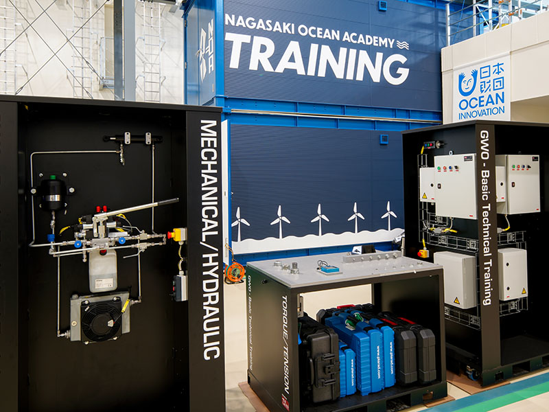 長崎海洋産業クラスター形成推進協議会は、洋上風力発電の技術者・技能者を育成する国内最大の訓練施設だ。今年5月からGWOの基本技能訓練を開始し、2027年度には国内初の洋上タワーで作業員輸送船を用いた訓練を提供する。