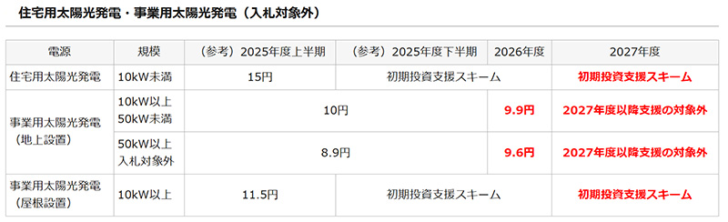 再生可能エネルギーのFIT制度・FIP制度における2026年度以降の買取価格と2026年度の賦課金単価を設定