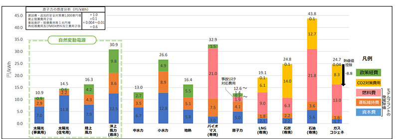 発電コストの比較(出典 経済産業省 発電コスト検証ワーキンググループ)